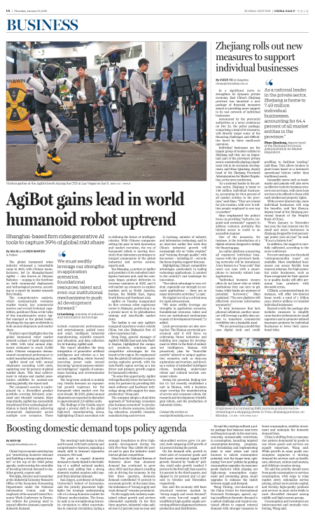 AgiBot gains lead in world humanoid robot uptrend