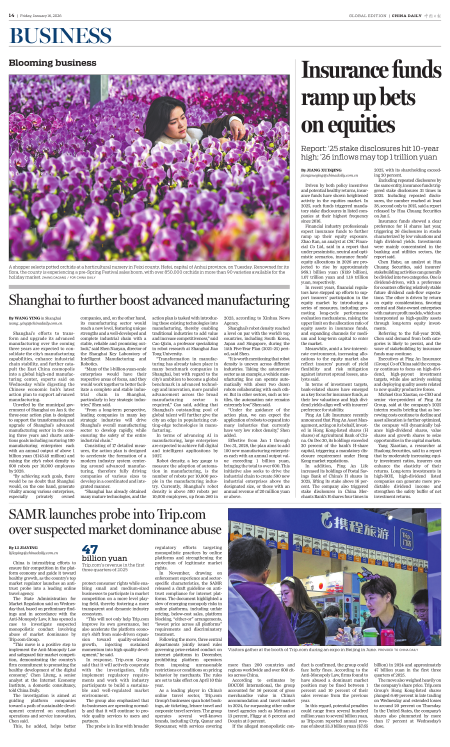 Shanghai to further boost advanced manufacturing