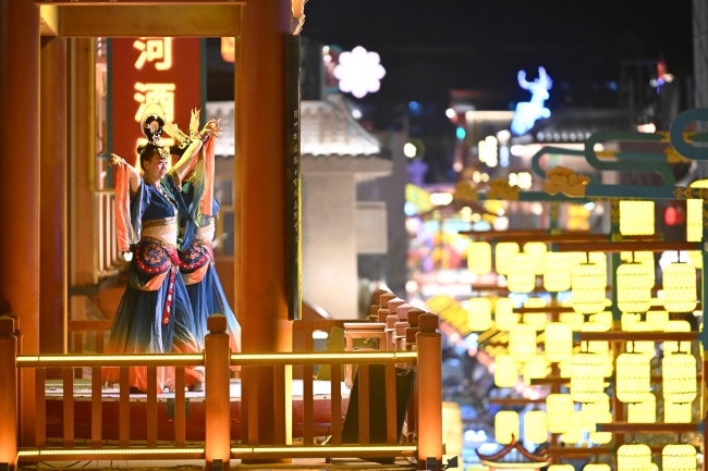 The 2026 Dunhuang Lantern Festival lit up on Dec 31 at the Dunhuang Night Market and will continue to be staged there until March 31. A highlight on Jan 10 featured captivating performances by local artists, drawing visitors into the festive atmosphere.
