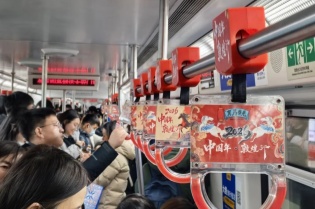 The handrails inside Beijing subway carriages have been updated with vibrant Dunhuang-themed designs. The initiative merges millennium-old Eastern desert oasis aesthetics with festive Chinese New Year celebrations.