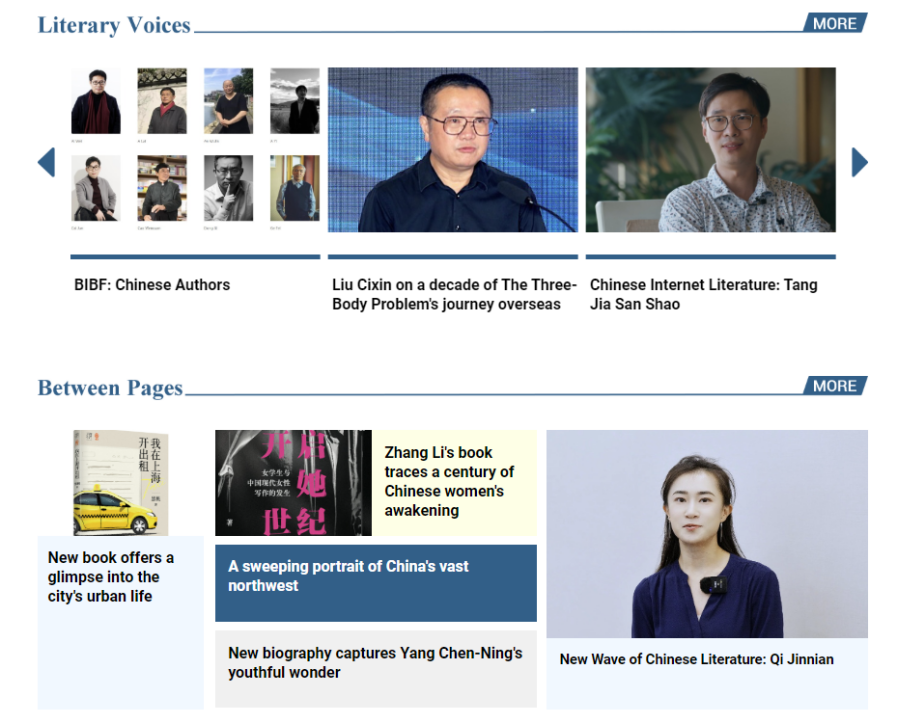 The Chinese Literature Special Section will showcase contributions from Chinese and international writers, critics, renowned scholars, and representatives of literary organizations from various countries, presenting the long-standing tradition and latest achievements of Chinese literature in vivid and multidimensional ways. Tailored to international audiences, the Special Section will feature multiple formats, including articles, images and video interviews, and develop a series of signature columns such as Events, Literary Voices, Between Pages, Around China with Writers, and the Chinese Literature Readers' Club. It will report on the latest developments in Chinese literature, organize in-depth interviews with writers, introduce outstanding literary works, and showcase China stories from writers' perspectives, building a bridge for interaction and exchange between Chinese and international readers and presenting a comprehensive view of the achievements and contemporary vitality of Chinese literature. The section will also be optimized for mobile devices, allowing readers to access a library of Chinese literature at their fingertips, and enjoy the beauty of Chinese writing on the go.