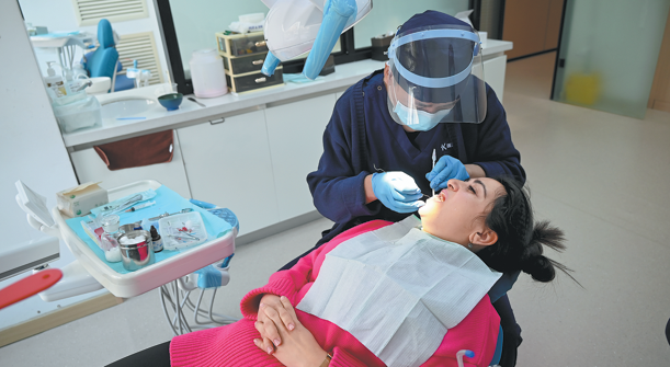 A Chinese dentist treats a Russian patient at a general clinic in Heihe, Northeast China's Heilongjiang province, on Dec 24. QIU QILONG/FOR CHINA DAILY