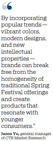 Jason Yu, general manager of CTR Market Research, said today's consumers are placing greater value on individuality, emotional connection, and design appeal. "By incorporating popular trends — vibrant colors, modern designs, and new intellectual properties — brands can break free from the homogeneity of traditional Spring Festival offerings and create products that resonate with younger consumers," he said.