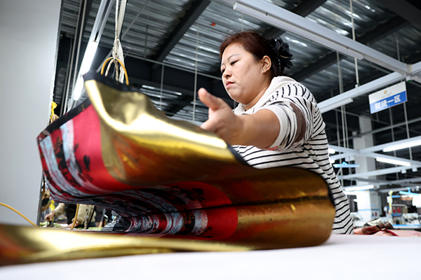 A worker makes horse-face skirts in a workshop in Caoxian.[Photo by Wang Hui/For China Daily]