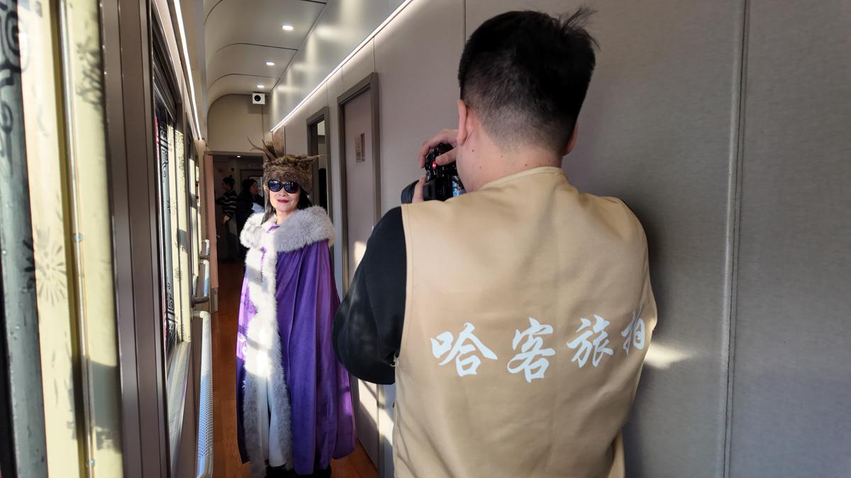 Passengers on train K5197, which runs between Harbin and Yabuli in Heilongjiang province, were offered a complimentary travel photography service on Sunday morning.
