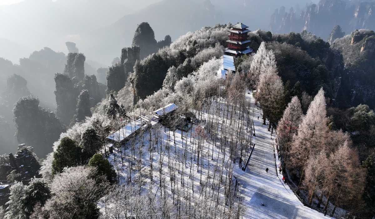 A recent snowfall has transformed the Zhangjiajie National Forest Park in Central China's Hunan province into a serene winter wonderland.