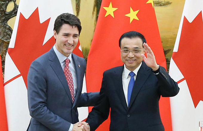 Free trade studies agreed on as Li meets with Canadian PM Trudeau