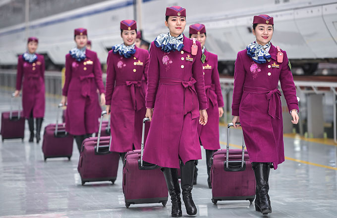 Crew members of high-speed trains linking Xi'an, Chengdu