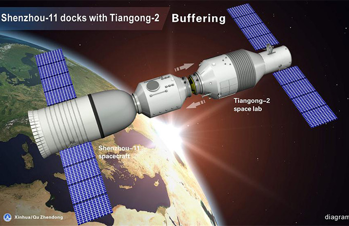 Shenzhou XI spacecraft docks with Tiangong II space lab