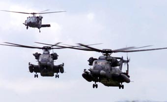 A CH-46 Sea Knight transport helicopter with British and US soldiers on board has crashed in Kuwait, US defence officials said late Thursday. "A marine helicopter has gone down in the area of operations," a Pentagon spokesman said, while US television reports claimed there were no survivors from the crew of 16. The Sea Knight crash was the third incident involving US helicopters since hostilities began 24 hours ago. An MH-53 Pave Low helicopter of the US Air Force special forces had a heavy landing during operations in southern Iraq. All six crew members survived unscathed. Later Thursday, a US Army AH-64 Apache attack helicopter experienced similar problems landing in Kuwait. There were no casualties, according to a US official. |