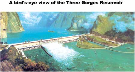 Sources with the Three Gorges Project Development Corporation said the filling of the reservoir is progressing well despite the appearance of some debris. Sailing boats have been heavily affected by the debris, such as rubbish and tree branches floating in the reservoir. "Their speed has been greatly slowed down by the obstacles and sometimes, the safety of the boats and ships are threatened,'' an official surnamed Cao told China Daily. The debris appeared after a large area of mountains, towns and land was covered by the huge reservoir. The official said his corporation is preparing a large-scale clear-up of rubbish in the passage. About 1.3 million rural and urban residents in 12 counties in the Chongqing Municipality and Hubei Province have made way for the gigantic project which costs a total of 180 billion yuan (US$21.6 billion). Dozens of natural and cultural heritage sites and tourist attractions have been submerged. Despite the current filling, the water quality has been unaffected by the flooding of the reservoir, and acidity and alkalinity showed little difference from records of the past decades, said local authorities tasked with monitoring the quality of Yangtze River water. Zhang Xiaoping, director of water quality monitoring for the Yangtze River valley, said that a two-month-long study showed that by Sunday afternoon, the quality of water in the 150-kilometre area between the Three Gorges dam and Wushan Mountain was as good as before. Meanwhile, soil erosion is becoming less threatening in the reservoir area, where the coverage of suffering from soil erosion is decreasing at an annual rate of one per cent, according to a remote sensing survey. The survey has shown the area of erosion at the reservoir area has decreased from 38,800 square kilometres in the mid-1980s to 30,000 square kilometres. It indicated that serious soil erosion had been effectively curbed in the region, said Hu Jiajun, director of the Yangtze River Soil and Water Conservation Bureau. "But we need to keep alert as the reservoir is growing,'' said Hu. The Three Gorges reservoir area covers 21 counties and cities in Central China's Hubei Province and Chongqing Municipality with a total area of 58,000 square kilometres. Soil erosion is serious in the region because of the hilly landscape, exposed mantle rock and heavy rainfall. As the ecological environment has a direct impact on the normal operation of the reservoir, the Chinese Government has spent 500 million yuan (US$60 million) in special funds to curb soil erosion in the region since the 1980s. The central and local authorities have also injected large amount of money into creating a tree belt and converting poor farmland into forest since late 1990s. As a result, the area covered by forest around the reservoir area expanded by 2.2 million hectares in the past two decades, according to Hu. The central government will allocate another two billion yuan (US$240 million) in the coming years to improve eroded lands, Hu said.