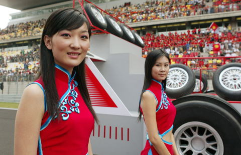 Dazzling cheong-sam grid girls for Shanghai F1